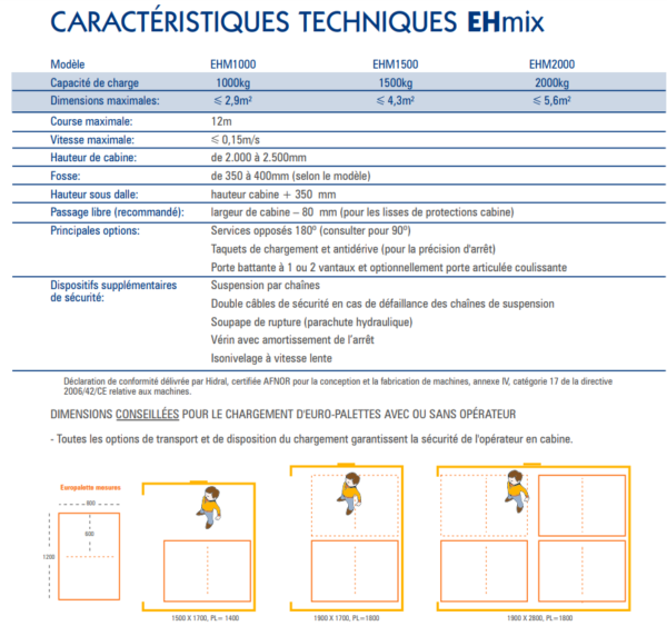 L’Élévateur EHmix est un monte-charges offrant deux modes de fonctionnement: